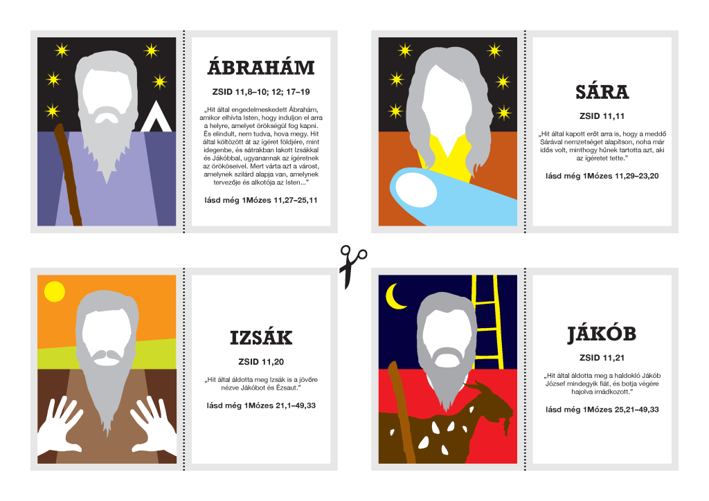 A zsidókhoz írt levél 11-12. fejezetében felsorolt hithősök Ábeltől kezdve Ráhábon át egészen Jézusig, aki a hitünk szerzője és beteljesítője.