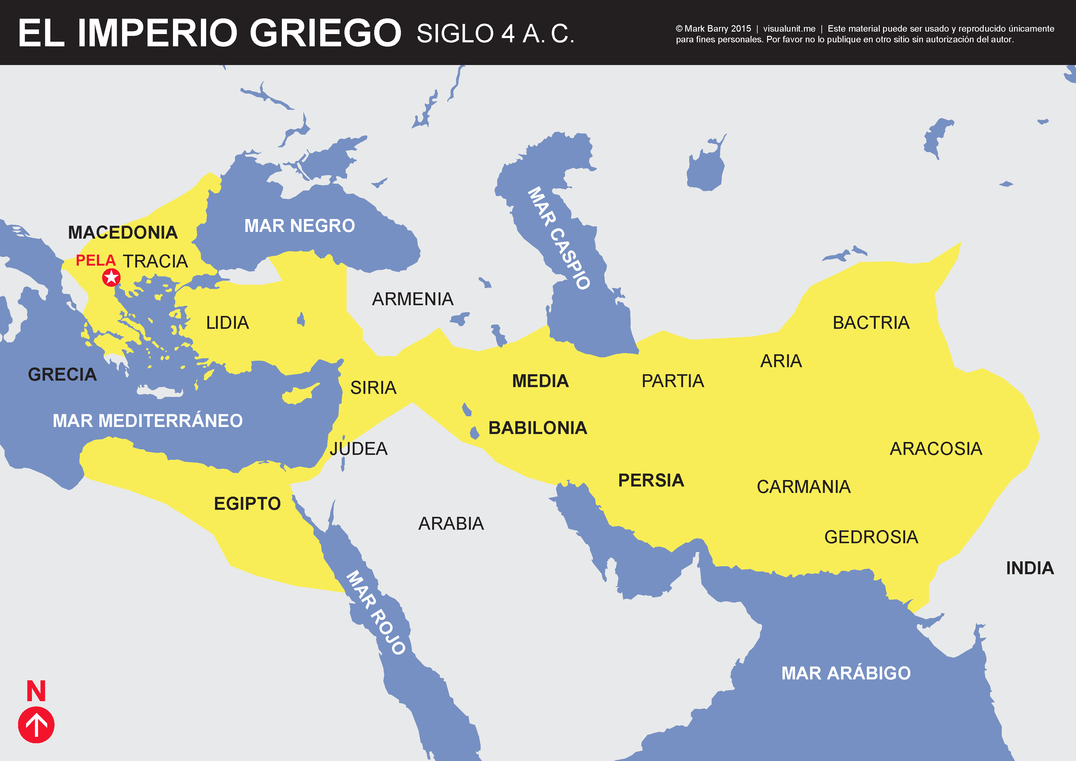 Un mapa simplificado del imperio griego en el siglo 4 a. C.