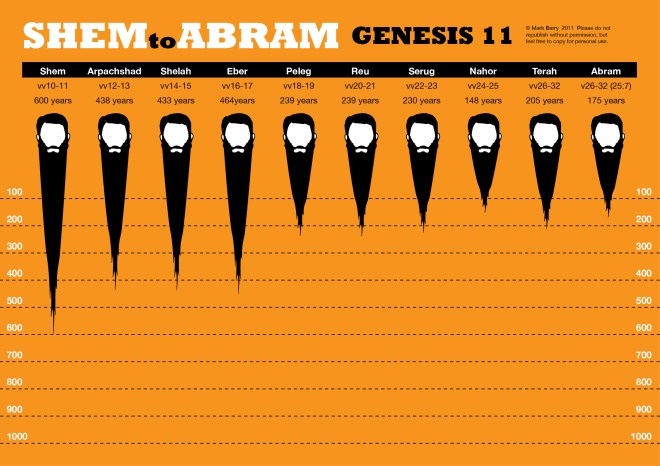 The genealogy of Genesis 11, from Shem to Abram by beard-size. PDF version (92 KB)